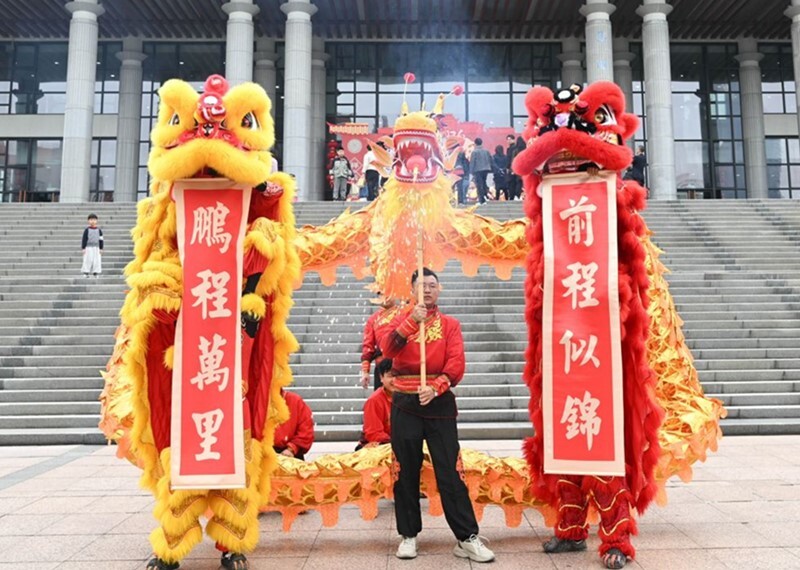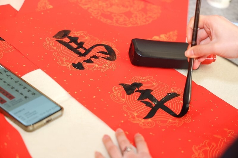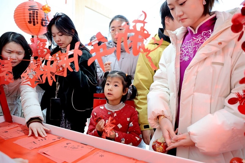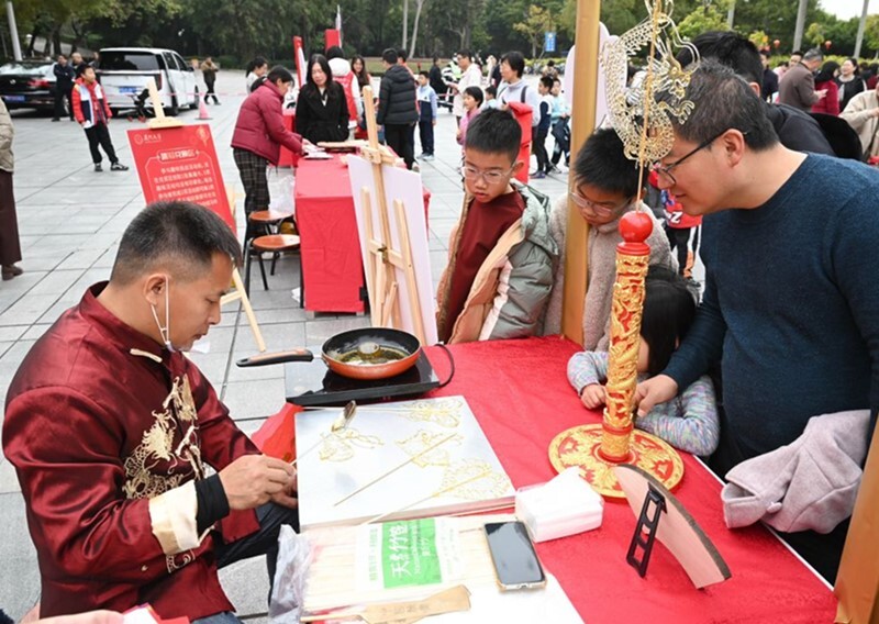 木偶戏团队、糖画艺术家现场表演,展示非遗魅力;书画专家挥毫泼墨、书写春联;离退休老同志教授中国结编织、趣味剪纸……现场欢声笑语、暖意融融,大家沉浸式体验春节习俗与传统文化。