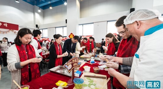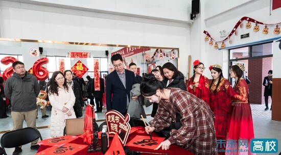 慰问交流后,师生齐聚大学生活动中心青蓝大厅开展联欢。大厅外,“一站式”学生社区新春游园会热闹举行,“摸福字”“套圈”“猜灯谜”“蹴鞠”“投壶”等传统民俗活动,让同学们沉浸式感受中华年俗的独特魅力;大厅内,师生围坐桌前共同包饺子、写福字、剪窗花、编绳结,在欢声笑语中迎接新春。