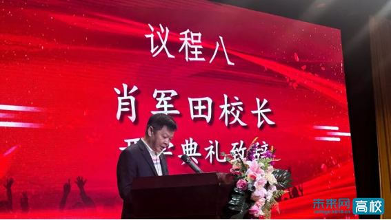 学校校长肖军田代表全校师生员工向全体新生表示最热烈的欢迎。随后,他向大家分享三个身边榜样的故事。