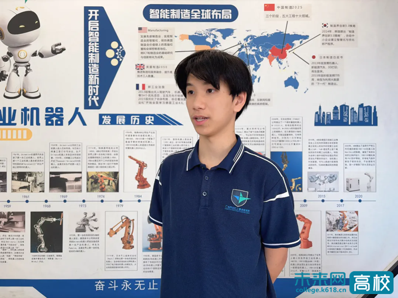 “他说在这里每天都有进步。”麦万里说。除了哥哥的推荐,智能制造高考班既能学到技能也能考大学很吸引他,学校完善的实训设备更坚定选择就读高考班,想考个好大学。