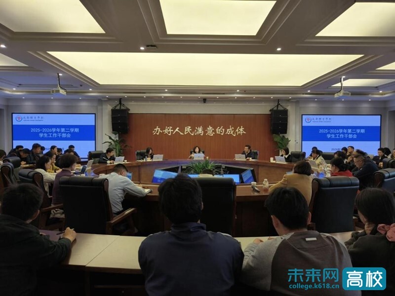 3月11日下午,成都体育学院召开2025-2026学年第二学期全体学生工作干部会议。学校党委常委、副校长邬红丽,党委常委、组织部部长郑宇出席。学生处、团委、各学院学生工作负责人及全体辅导员参加会议。会议由党委学生工作部部长黄霞主持。