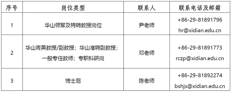 招聘信息全年有效,应聘者可随时申请。若了解更多详情,请关注“西电教师”微信公众号和登录西安电子科技大学党委教师工作部/人力资源部官方网站(https://jgrsrc.xidian.edu.cn/)。
