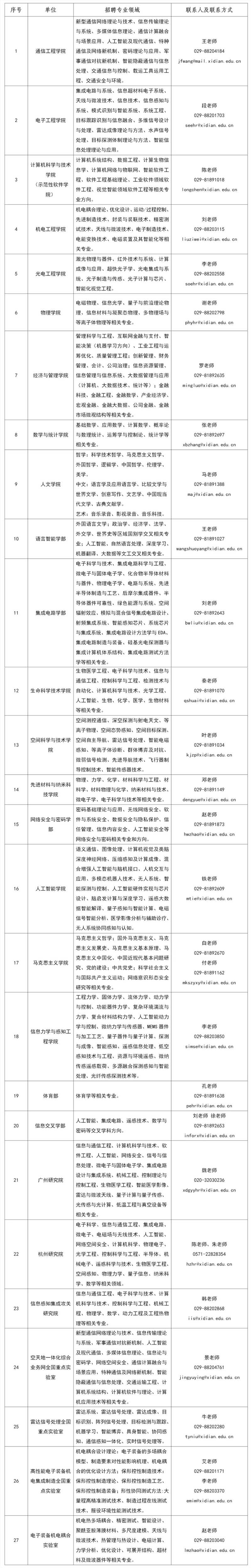 各教学科研单位招聘需求及联系方式:
