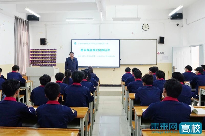 3月18日、19日,云南机电职业技术学院党委书记赵伟,党委副书记、校长沈韬率先垂范,深入思政育人第一线,分别以形势与政策课的形式,为学校材料成型与控制技术、建筑经济信息化管理专业的学生讲授了内涵丰富、启迪深刻的“开学思政第一课”。