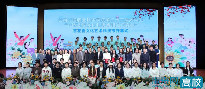 3月25日,云南交通职业技术学院第二十三届大学生“云桥逐梦向未来,挺膺担当正青春”百花香文化艺术科技节开幕式举行。学校党委副书记贺斌,相关职能部门负责人,各学院领导、团总支书记(负责人),以及周边社区、兄弟院校代表,学校师生代表参加活动。