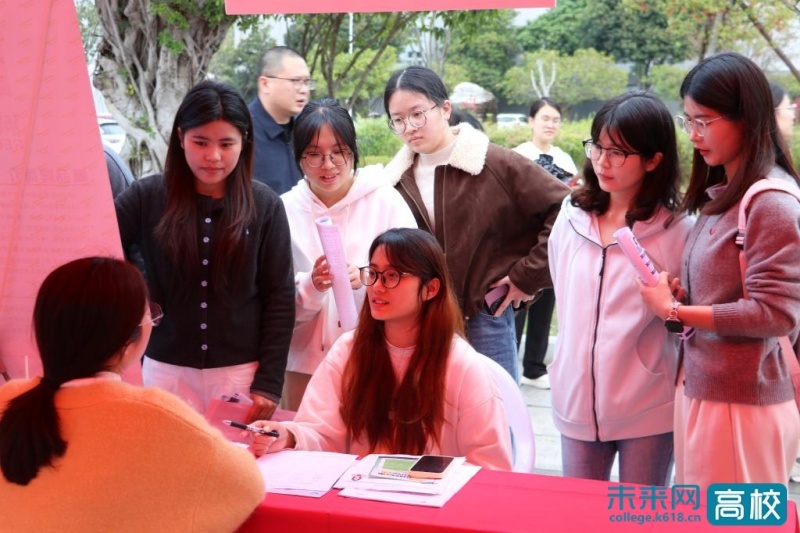 东侨校区求索大道上,2026年春季校园招聘会火热开启。本次招聘会共邀请112家优质用人单位参与,岗位覆盖新能源、智能制造、信息技术、教育教学、生物医药等多个领域,共计计2356个岗位,为毕业生提供了丰富多元的职业选择。宁德市人社局、福州市人社局特设人才政策咨询专区,工作人员面对面为毕业生解读就业补贴、住房保障、创业扶持、人才落户等相关政策。招聘会现场,毕业生手持简历与企业HR深入交流岗位要求、薪资福利、职业发展路径等内容,不少学子现场与企业达成初步就业意向。同时,直播带岗活动在云端同步上线,主持人在各个招聘会展位之间穿梭,全方位讲解企业发展概况、岗位招聘需求、任职要求及晋升通道,实时回应评论区毕业生的提问,直播过程中互动氛围热烈,累计超百名学生在线参与咨询。